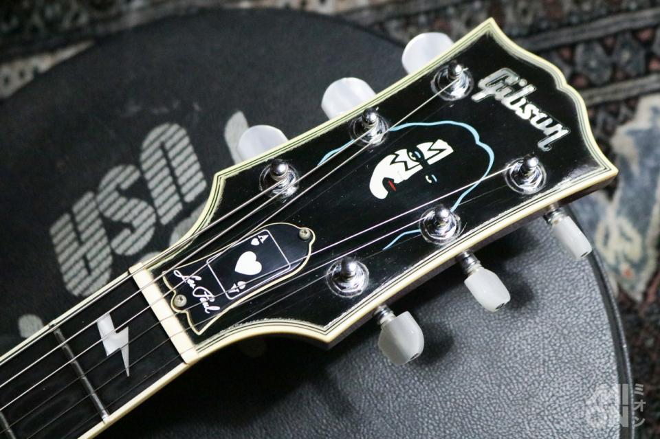 ヘッドにフェイスペイントを施したエースのフェイスインレイ、ライトニングボルトの指板インレイ、12Fにサインインレイ、ディマジオのピックアップを3発搭載と、あの頃を想起させるルックス。