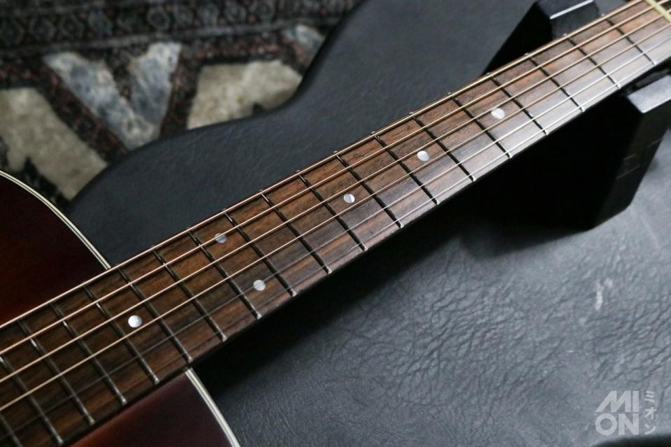コラボモデル全ラインナップ中、唯一のマホガニーサイド&バック、そしてトップにサテン仕上げを採用しているので、落ち着いた外観で音色の響きも極上、あらゆるプレイヤーにおすすめできるモデルです。