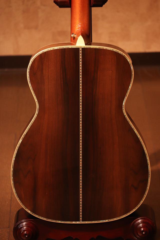 備考:アストリアスギターECシリーズ最上位機種「エンペラーハカランダ」をベースに特別製作されたモデルです。口輪にハカランダ材を使用し、ヘッドと指板の装飾を無くすことで上品な外観となっております。表板には最高級のジャーマンスプルースを、横裏板には近年近年ではなかなか見かけないレベルの上質なハカランダ材が使用されています。この個体は当時当店から工房へ製作依頼をしたものですが、材料はすべて選定された最高級の物を使用しています。重厚で深みのあるベース音とクリアで色鮮やかな高音が混ざり合い、とても魅力的なサウンドとなっています。