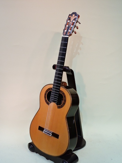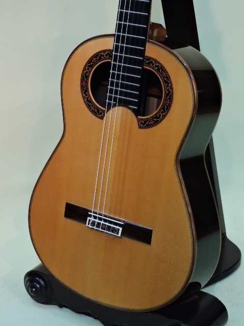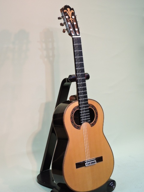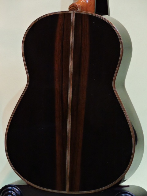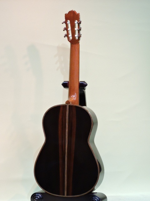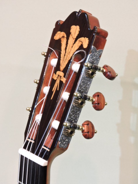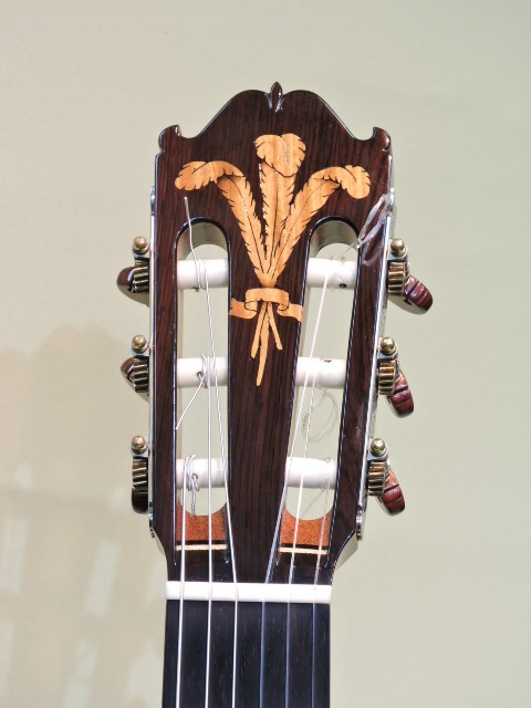 シンプリシオ・モデルというからにはシンプリシオのオリジナル作品にもこの写真と同じく、サウンドホールが指板の両脇をくり抜いた位置にあるギターが残されている訳で、今回はそのコピー作品ということになります。