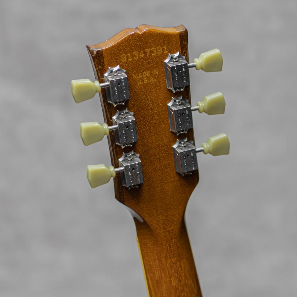 ブックマークする 値下げ通知に登録ギブソンアーチトップのスタンダードとして堂々とその名を歴史に刻むモデル"ES-175"。16インチのラミネイトメイプルボディというスタイルはアーチトップギターの標準の1つとしてあらゆるメーカーの指針とされています。本器は1997年製"ES-175 Reissue" Antique Naturalカラー。1970年代中頃に始まったギブソン旧カラマズー工場からナッシュビル工場への移転に伴い、1980年代の間しばらく生産がされなかったESモデル他でしたが、1990年台に入りその生産を再開、王道仕様の定番スペックにてしっかりラインナップがされるようになりました。マホガニーネック、スモールヘッド、クラウンインレイ、"Gibson Deluxe"クルーソンスタイルチューナー、メイプルラミネートボディ、パラレログラムダブルインレイ。ABR-1ブリッジ、トラピーズテールピース、ピックアップには57Classicを搭載。この年代らしく見事なフレイムのメイプルの杢が美しいボディ。程よく僅かに色づいたナチュラルカラーも説得力あるルックスを演出しています。ミドルに膨らみのある牧歌的ギブソントーンが楽しめる1990年代製らしいキャラクター。決してワイドレンジではないもののおいしいゾーンを狙ったアイコニックなサウンド。57Classicピックアップとも相まって、程よく僅かにアタックにコンプレッションのある子気味の良い弾き応え。気構えし過ぎない程よいカジュアルさで楽しませてくれます。こちら経年相応のハードウェアのくすみ、極細かな小傷、擦れ跡程度はあるものの目立ったダメージは無くとても良好なコンデイション。フレットの目立った消耗も見受けられず丁寧に扱わていたことが判る良い印象。トラスロッドの調整を含めネックの状態も良好で、弾きやすいセッティングができております。全体的に雰囲気よく細かラッカー塗装のウェザーチェックがびっしりと入っており、角度によって浮き出す様子もまた一興。各所王道のウッドマテリアルとデザイン、ニッケルハードウェアと塗装の質感も相まって説得力あるルックスが抜群の1本、ぜひご検討ください。オリジナルハードケース付属
