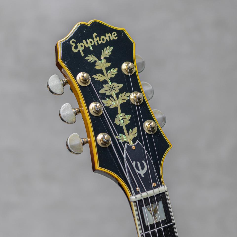 Epiphone(エピフォン):過去にはバンジョーなども製作していたが、1928年に社名をエピフォンとし、ギターの製作を開始。1957年にギブソンに買収され、カラマズー工場で生産されたが1982年からはアジア諸国に生産拠点を移し、オリジナルの他にギブソンの廉価版も展開。エレクトリックギターではLes Paul、SG をはじめ、ビートルズも使用したCasinoの他、Sheratonなども有名。(Epiphone/エピフォンのキーワード検索結果はこちら)