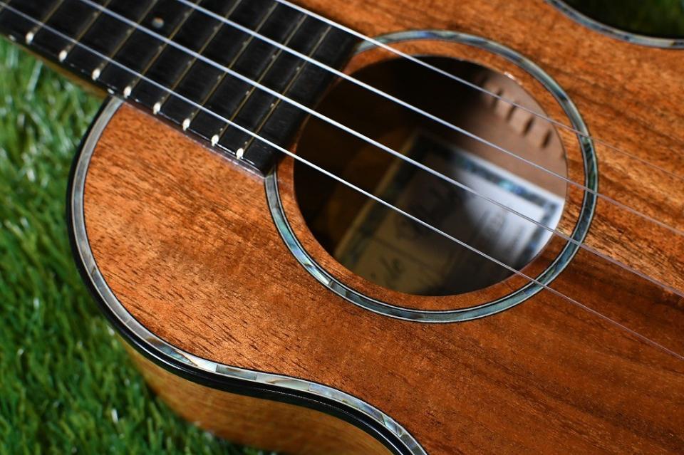 ボディには良質なハワイアンコア材を、指板やブリッジにはエボニーを使用しています。