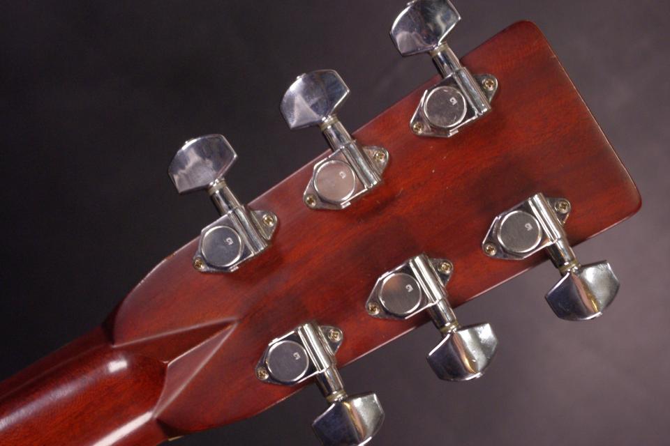 トップ スプルース単板、サイドバック ローズウッド合板3ピースバック、指板・ブリッジ ローズウッド、ネック ナトー、オリジナルチューナー、オリジナルブラックピックガード、Xブレーシング、