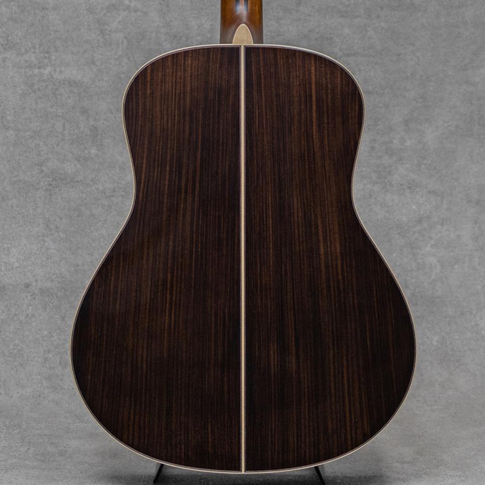 Bookmark Register for price cut notificationヤマハを代表するギターとして、数多くの一流アーティストをはじめ、多くのギターファンに愛されてきたLシリーズ。“FG”シリーズの上位機種として1974年にL-31を発表して以来、時代のミュージックシーンを彩り、数多くのアーティ ストやギターファンに愛され、日本の音楽シーンを支えて参りました。"L=Luxury(豪華)"を冠にした本シリーズは、伝統を継承しながらも現代のニーズを反映させ、細部にわたり改良を施されたシリーズ。本器は"L56"のオリジナルジャンボボディモデル"LL56 Custom ARE”。弊社三木楽器株式会社の創立200周年を迎えるにあたり、5本の特別モデルをオーダーさせていただいた記念モデルのうちの1本。特別仕様として"地球の夜明け"をテーマにしたカスタムデザインのヘッドインレイを採用。その美しい意匠との調和を追求し、ヘッドのYAMAHAロゴは通常のアバロン貝ではなく、上品な白蝶貝を使用。さらに、指板インレイを排することで、全体のデザインに統一感と静謐さをもたらしています。高い評価を得るARE処理を施した柾目痕浮き出るイングルマンスプルーストップ材、揺らめく杢が浮き出る美しいインディアンローズウッドサイド&バック、マホガニー&ローズウッド5プライネック、エボニー指板&ブリッジ、アバロンヘッド&ボディトリム、アバロンロゼッタ、メイプルバインディング、べっ甲柄ピックガードTM67Gゴールドペグ。サウンドメイクの肝であるトップブレイシングにはノンスキャロップ・ブレイシング構造が採用され、LL-TAKA製作時に得た技術をもとに改良されたデザインが使用されています。奥深くも、しっかりと芯のあるサウンド。美しくきらびやかで、伸びのあるジャパニーズフォークサウンド直系の響き。国産26/36とも一線を画すこの仕上がりは、”カスタム”の称号を冠するモデルならではの響きです。ヤマハカスタムモデルがオーダーストップして10年以上、周年モデルと言うことで実現いただいたショップカスタムモデス、是非お手元でお楽しみください。正規品証明とスペックが記載されたアクリルプレートが特典として付属します。