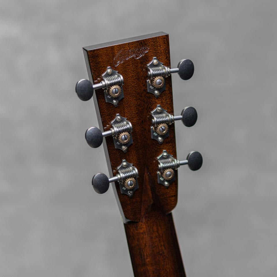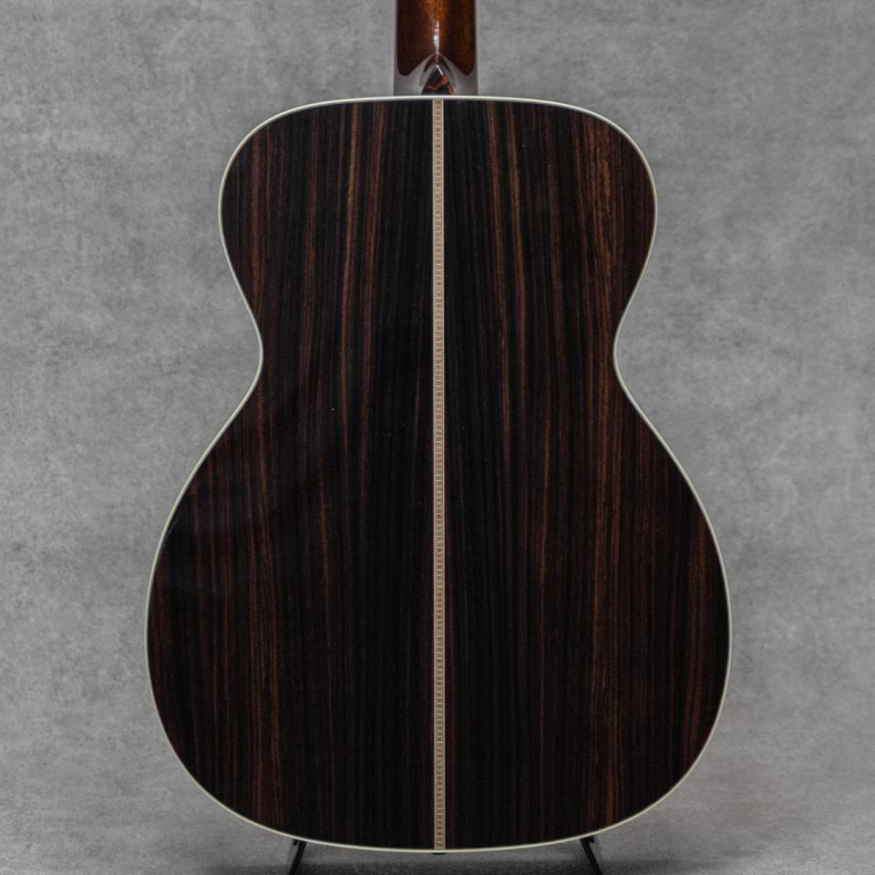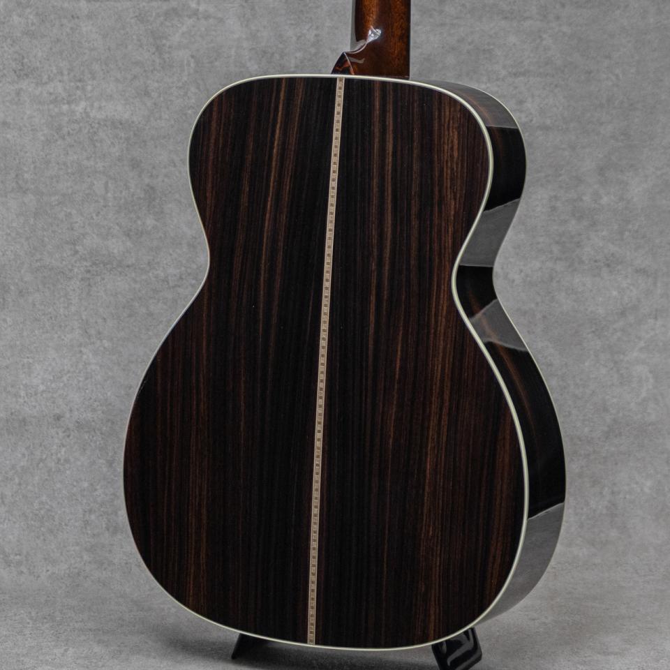 ブックマークする 値下げ通知に登録世界的にもっとも高い評価を得ているブランドの一つであるコリングスギター。コリングスの高く保たれたその完成度は、プレイヤーがその楽器を手に持つだけで見惚れてしまう美しさを持ち、音を出せば納得する響きを放ちます。2017年にカリスマであった”Bill Collings(ビル・コリングス)”が逝去し、最初期よりのマスタービルダー"Bruce VanWart(ブルース・ヴァンワート)"も引退となり、着実に若い世代へと引き継がれたコリングスは更なる情熱と更なる完成度を魅せながら輝き続けます。本器はコリングスが辿り着いた境地、アコースティックの新シリーズ”Hill Country(ヒル・カントリー)”の1本、”OM2AHC”。”Hill Country"シリーズでは全モデルでアディロンダックスプルーストップに、ハンドメイドのピックガード&ウェッジ&ネックヒールキャップ、ヘッド裏ブランド刻印を採用。コリングスが持つ良さをしっかりと継承しながら、よりアコースティックに、よりダイナミックに、進化を遂げた新シリーズです。本器は2StyleのインディアンRWのOMモデル。目幅が狭く柾目痕が前面に浮き出る美しいアディロンダックスプルース、美しい杢目を魅せる極上イーストインディアンローズウッドサイド&バック、ホンジュラスマホガニーネック、エボニー指板&ブリッジ、ロングサドル、ゴールドMOPスロッテッドダイアモンド&スクエア指板インレイ、レリックウェバリーオープンバックペグ、ハンドメイドべっ甲柄ピックガード、アイボロイドバインディング、ジグザグバックストリップ、ヒルカントリースキャロップドXブレイシング w/ショートタングブレイス。新たに様々なこだわりを詰め込んだ”Hill Country”は、現アコースティックマスタービルダーの”Steve Nall(スティーブ・ノウル)”が開発の大部分を担った自信作。仕上がりにまず驚くのはそのサウンド。とてもふくよかで倍音豊かに轟く響きで、プリウォーのスキャロップサウンドのそれを彷彿させる完成度とクオリティ。そこに付随する兼ねてから持ち合わせるコリングスならではの芯の太いサシティンとアタック、そして明瞭で広いレンジ感。フラットトップアコースティックギターに求められる多くの要素をかなり高い次元で体現する完璧な実力派モデルに仕上げられています。OMサイズとは思えない密度と音量で、それに負けない音の広がり。フィンガータッチでも十二分にサスティンの効いた明瞭な響きを聴かせ、かかえるプレイヤーの感性にも直接響きかけるサウンドです。リバーブ感と粘り、しっかりとパワフルにレスポンスするダイナミックスレンジ、優れたトーンバランスとピッチ、、あげればキリがない完成度を誇る現代に体現される究極のトラッドギアの1本です。ここ数年のコリングスのスタンダードシリーズはとても完成度が高く、ある種の完成の域を覚えていましたが、あっさりと裏切り乗り越えられました。この魅力は本当に文字では語り尽くせません。ブレない高い志を持つ現役世代のコリングスが産み出す至極の逸品。とにかくお手元で、実際に、ご体感ください。