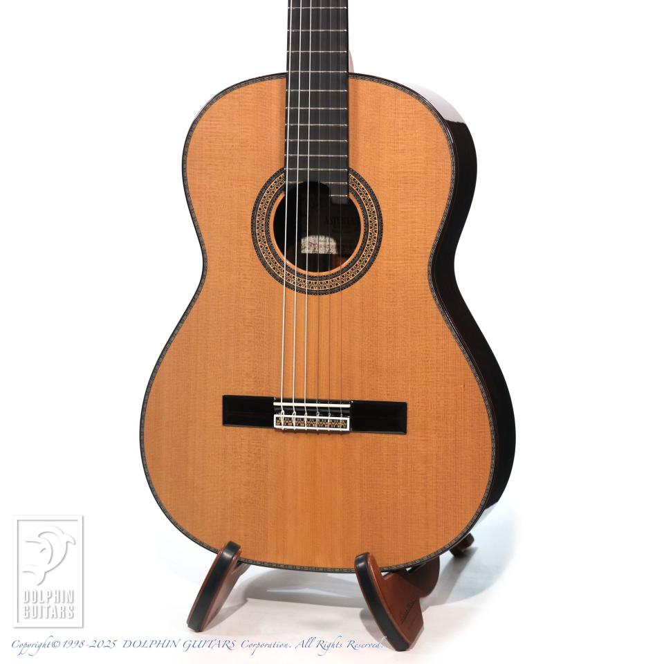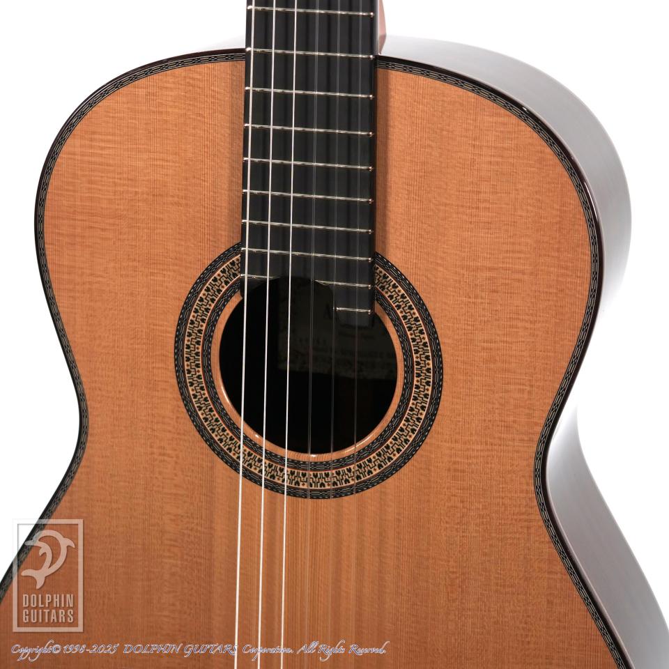 トップには選別されたシダーを使用。長い年月にわたって十分にシーズニングされたアストリアスならではの“技”というべき素材です。また、ネックには屋外・屋内での過酷なシーズニングを経たマホガニーを、指板には本黒檀を使用し、より強いネック強度と安定感をもたらします。