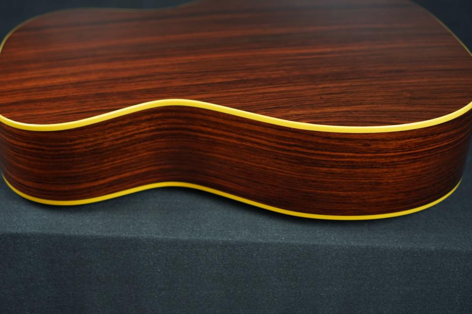 伝統的なOMスタイル、トップ材にアディロンダックスプルースを用いたデラックスタイプで、サイド&バックにはオーソドックスにインディアンローズウッドを用いております。