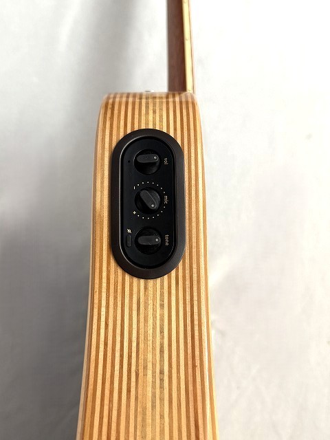 コントロール部には、マスター・ボリューム、ピックアップ/マイク・ブレンド、トーン、位相反転、バッテリーライフ・インジケーターがついております。