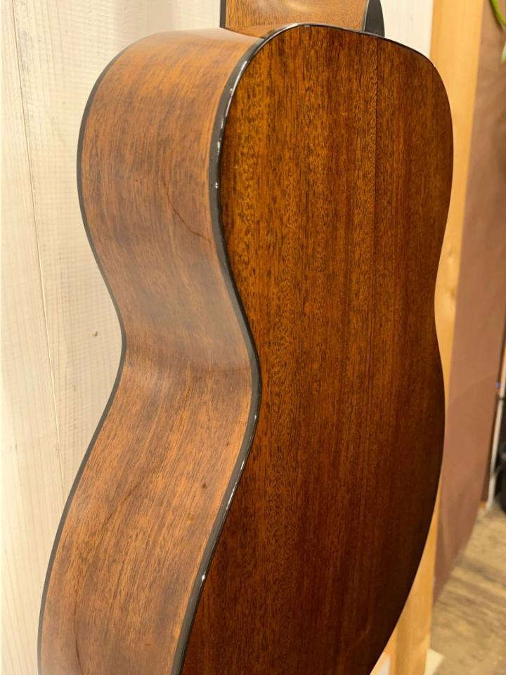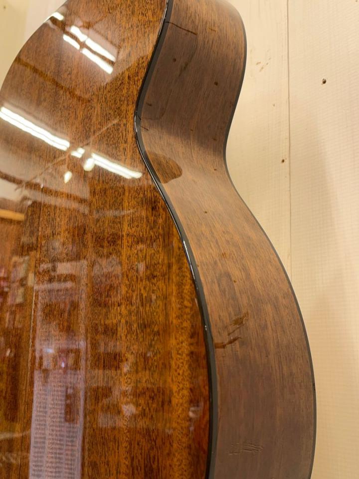トリプルオーよりも一回り小さく絶妙に抱えやすいサイズ感と、コンパクトながら奥行きのあるサウンド、マホガニーのウッディーで柔らかい音色は耳に心地よく、ついつい時間を忘れてつま弾きたくなります。