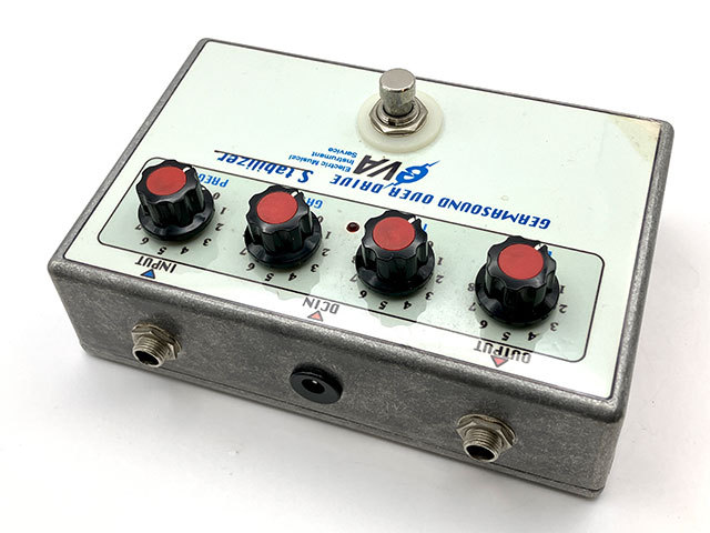 ゲルマニウムを使わずゲルマニウムサウンドを再現するオーバードライブ、エバ電子のGermasound Over Drive、中古品でございます。ゲインの幅はかなり広く、プリゲイン・ゲインとふたつのゲインコントロールでキメ細やかなサウンドメイキングが可能。ギターのトーン・ボリューム、指先のタッチやピッキングニュアンスを余す所なく捉えます。現場のアンプに左右されず常に安定したサウンドが得られます。