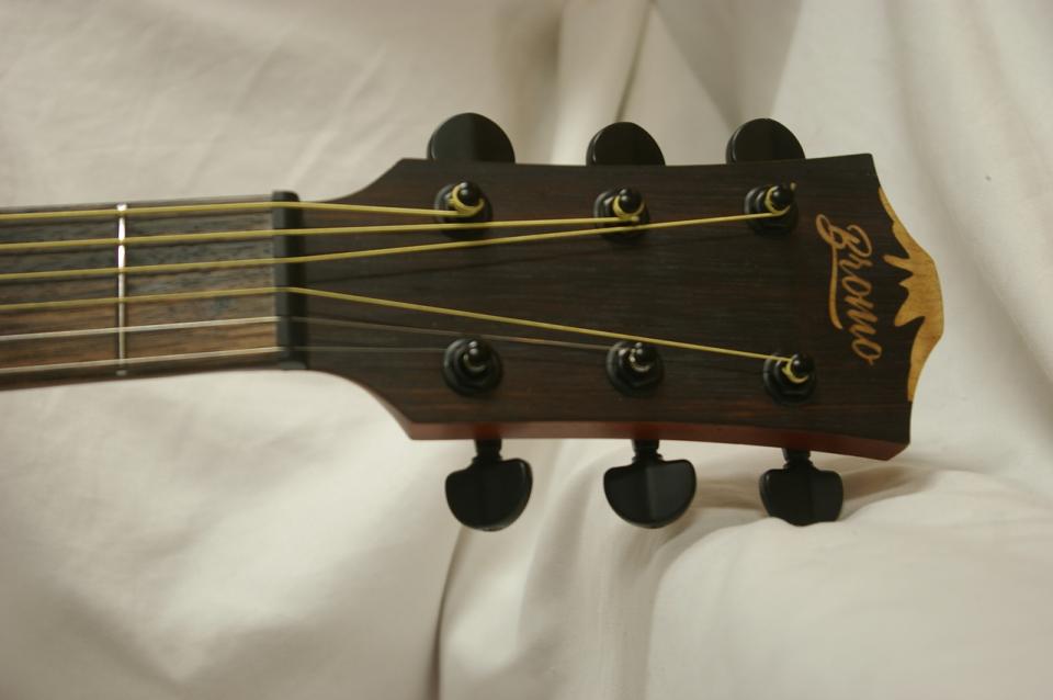 厳選されたソリッドマホガニー・トップと厳選されたマホガニー合板のバック&サイドを組み合わせています。マホガニーは、暖かくふくよかなサウンドをもち、革新的なToneFlowブレーシングシステムとオーディトリアムシェイプがよりふくよかな低音と深い響きを高め、暖かでふくよかで耳障りの良い心地いいサウンドを奏でます。オリジナルデザインのイーグルウイングブリッジ、アバロンを使用したイーグルアイポジションインレイ、アバロンを丁寧に組み合わせて制作された、ロープデザインのロゼッタが華やかで上品な見た目を演出しています。カッタウェイを搭載しハイフレットでのプレイアビリティを向上させ、Bromoオリジナルのピックアップシステムを搭載。幅広い現場で活躍できるモデルです。