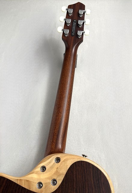 音響性能のベースとなっている特許出願中のネック・サポート・システムによって、トップとバックがネックを支えることなく独立して音を出すことができるようになり、弦を鳴らしたときのボディへの伝達や音の拡大がしっかりと得られる音響空間を実現しています。