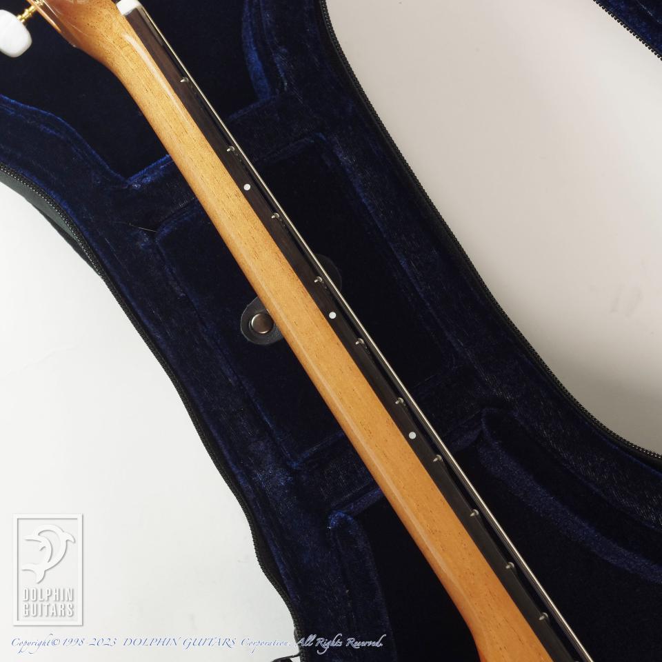 現代のナイロン弦モデルの人気が高まるのに伴い、各社 新たなスペックを導入してますが、本モデルは48mmナット幅のスリムネックを採用し、アジャスタブルロッドを仕込み、指板サイドにて3F / 5F / 7Fにポジションマークを配置し、PUシステムにはアンダーサドルPUとコンデンサーMICをMixするFISHMAN Pro Blendシステムを搭載。手元のコントロールで3バンドEQやPUとMICのバランサー、フリーケンシー、ノッチフィルターを装備しております。ライヴのメイン機としてはもちろん、生音のみでも十分にお楽しみいただける個体です。