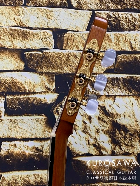 弦高は12フレット上で6弦側3.5mm、1弦側約3.0mm、クラシックギターの標準的な弦高よりもやや低いセッティングですがサドルの高さにも余裕があるのである程度の弦高調整は可能です。