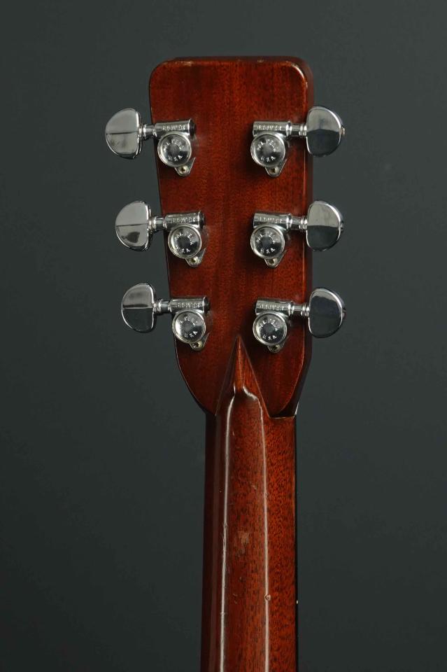 ブラジリアンのヘッドプレートに、MARTINデカール。ヘッドのコーナーが丸みを帯びた、特徴的なヘッド形状で、ワッシャーの大きなパテント入りのグローバーペグが、60年代後期らしいルックスです。