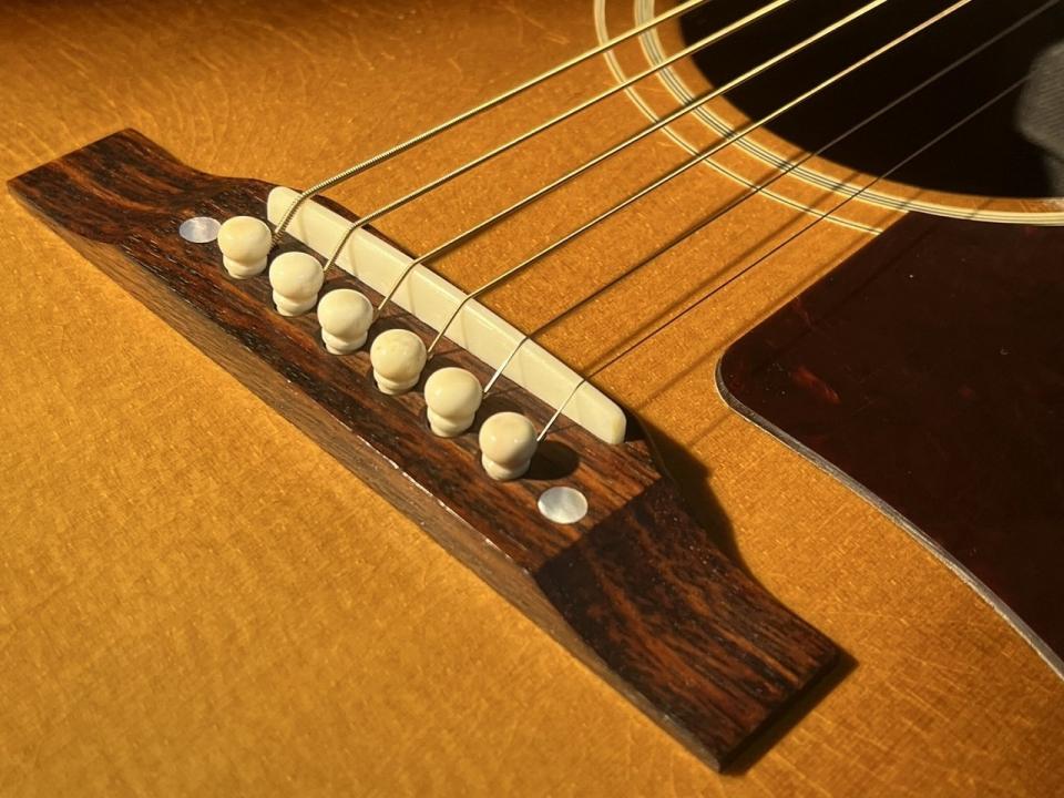 材構成やスケールはJ-45と同じですが、ブリッジピンの位置がやや上付きになっておりJ-45と比べてテンション感がありハリのあるサウンドが特徴です。