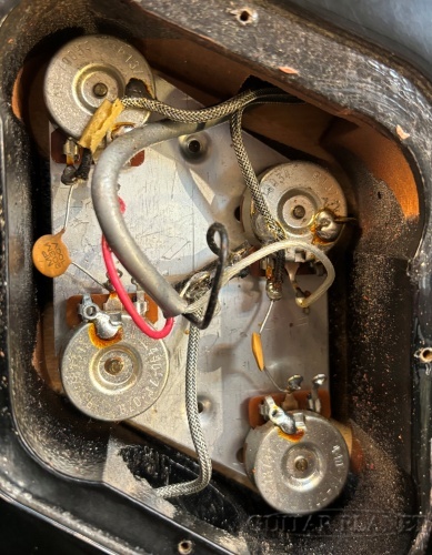 フレットは7割程度。ナットは当店で新しいパーツに交換。他のペグ、ブリッジ、エスカッション、ポットなどはオリジナルパーツ。