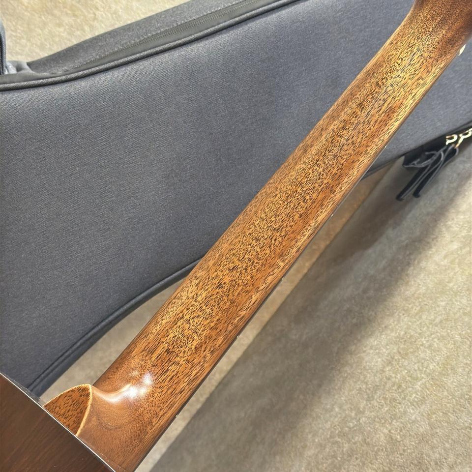 指板・ブリッジには黒々と締まった材が使われ、ネックは目の詰まった良質なマホガニー。