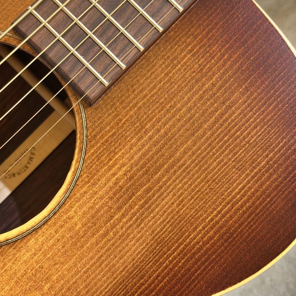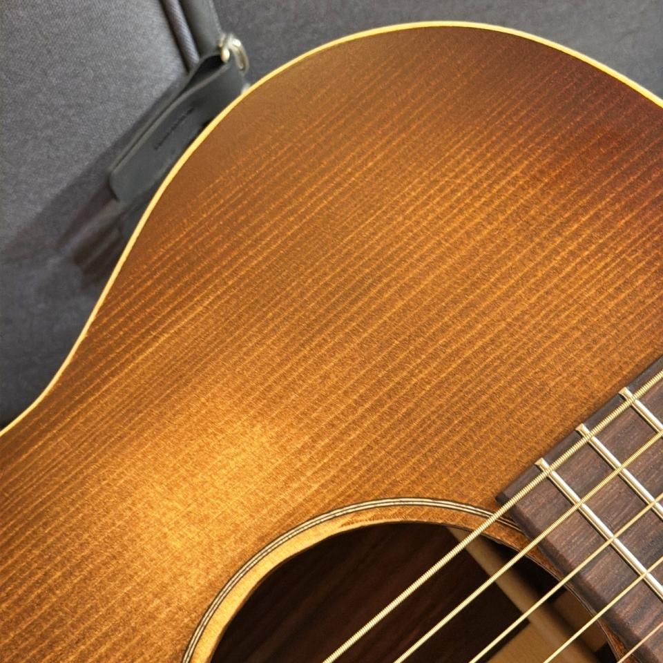 本機のトップには、アディロンダック・スプルースにVTS加工が施されており、新品ながらもヴィンテージギターを思わせる枯れ感と、反応の良さを兼ね備えています。