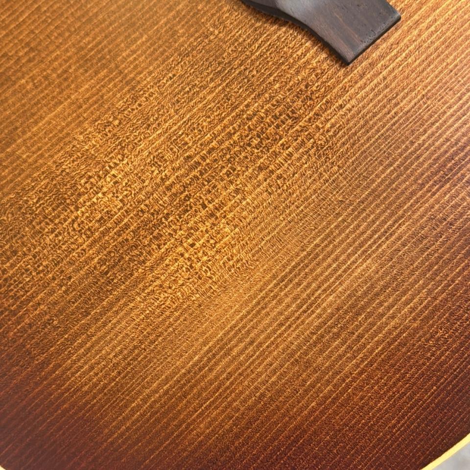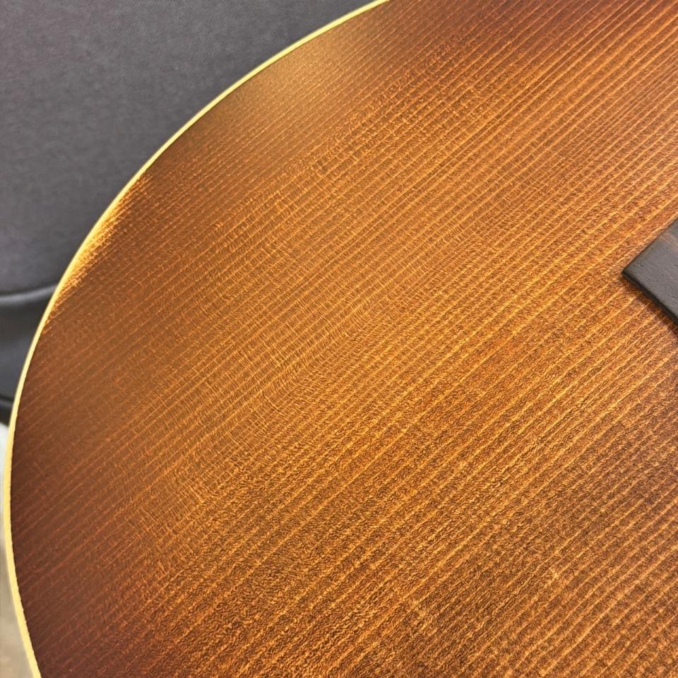 アディロンダック・スプルース特有の高い剛性による力強い音圧と、VTS加工によって引き出された立ち上がりの速さ、角の取れた倍音感が特徴。