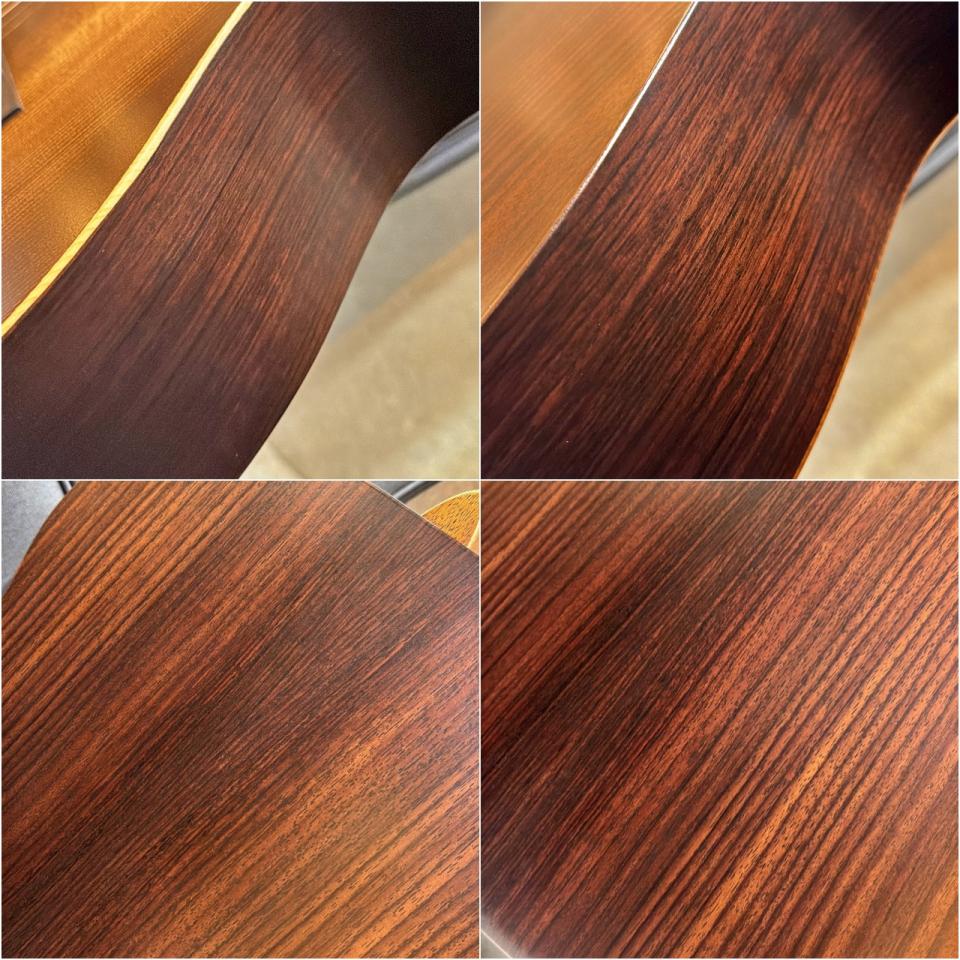 サイド&バックのインディアン・ローズウッドも同様に冬目が明瞭で、トップと統一感のある美しい表情を備えた良材です。