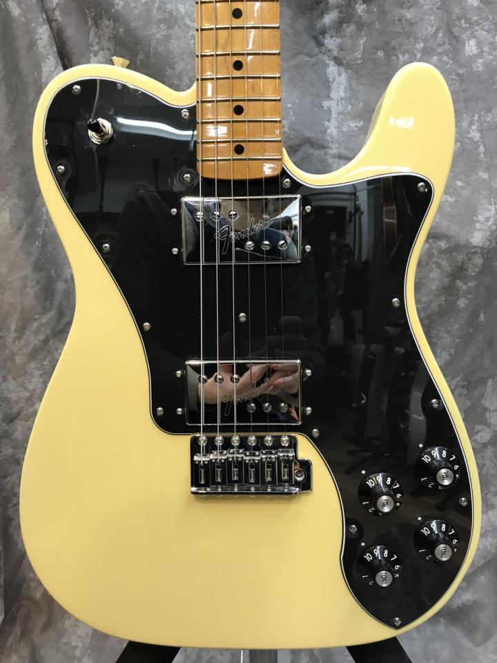 Uシェイプのラージヘッド3点止めワンピースメイプルネックやヴィンテージスタイル70sワイドレンジハムバッカーなど、70年代のテレキャスターデラックスを基にしつつも、シンクロナイズドトレモロブリッジを搭載したことで、さらなる表現が可能となった一本です。