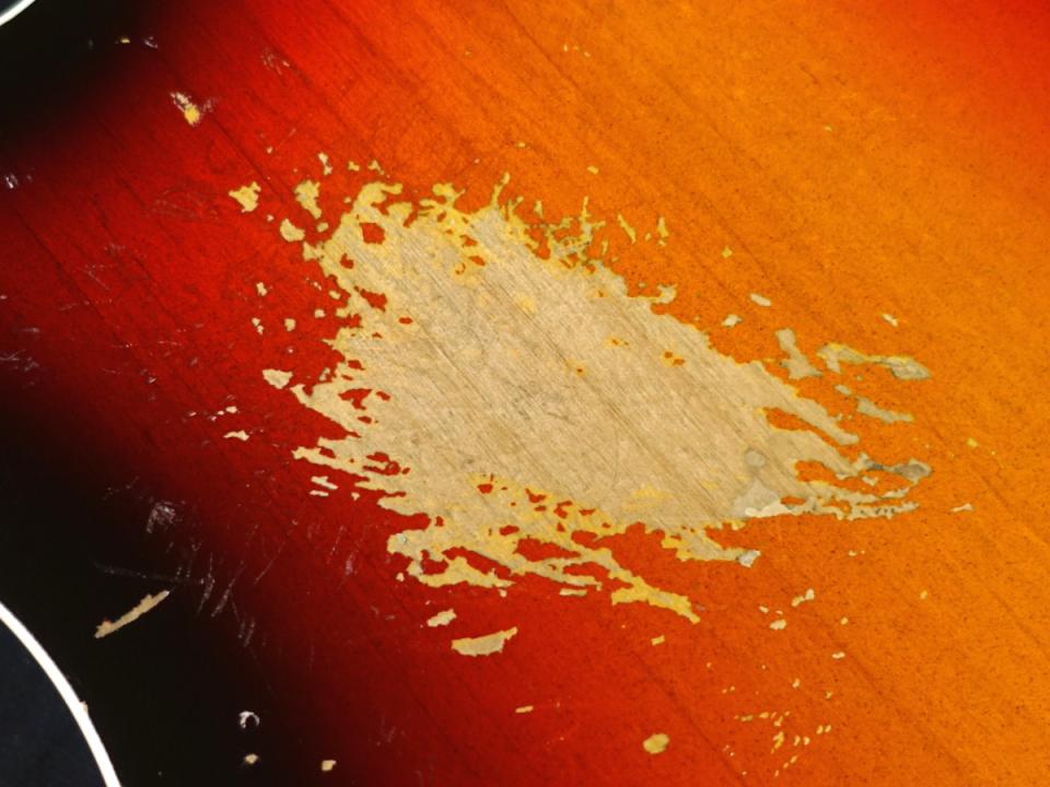 非常に塗膜の薄いラッカー仕上げにつき塗装剥がれが発生しやすく、使用に伴い無数の擦り傷、打痕、広範囲に渡る塗装剥がれ等、全体的にダメージが見受けられるなど非常に強い使用感が感じられます。