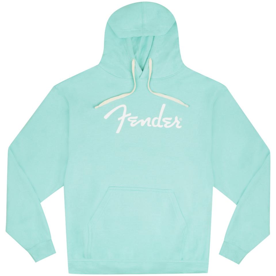 Fenderのスパゲティロゴをあしらった心地よいダフネブルーのフーディーは、ストリートからスタジオまで、あらゆるシーンで活躍します。