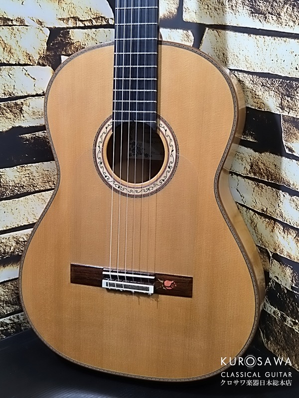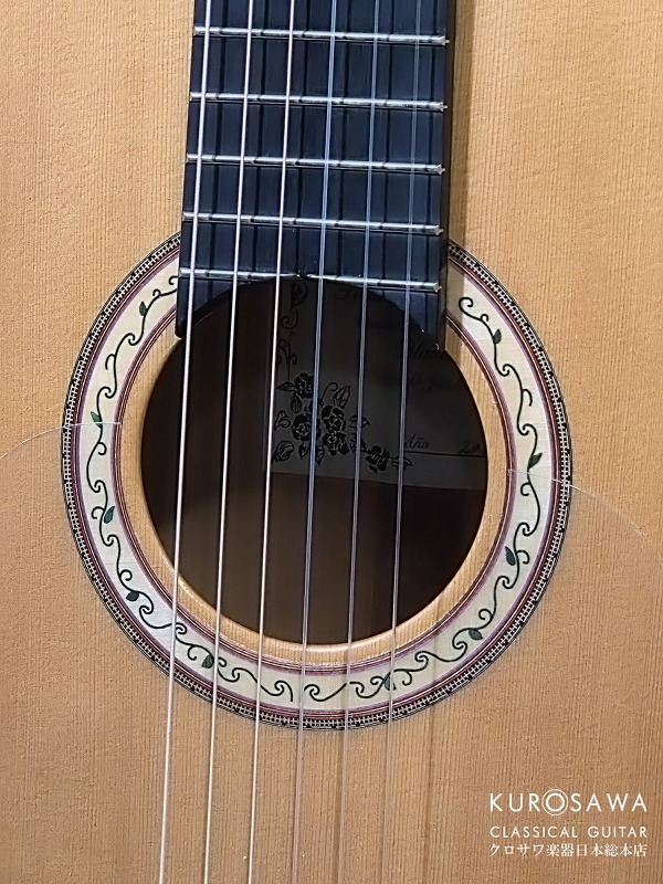 乾いた聴き心地の中に、沖仁氏の求める『艶やかさ』を加えたモデル。伴奏に最適で、アンダルシアの気質であるフラメンコをこの楽器からより深く感じられるだろう。沖仁氏の提案でバラのデザインをテーマにし、その華やかでもあり異国情緒あふれる空間をイメージし製作されている。