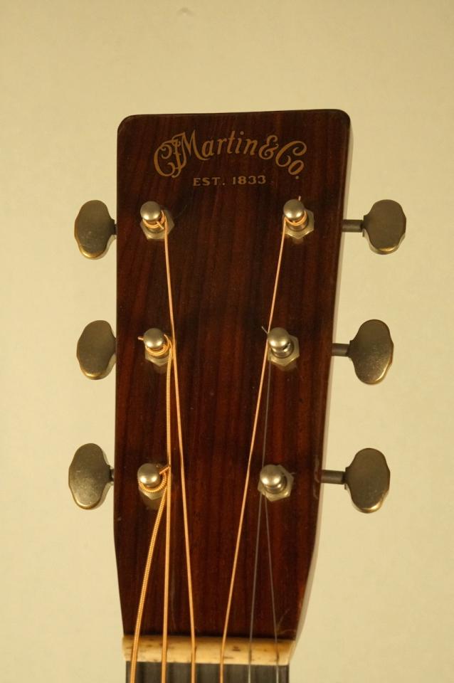 コンディションは美品中古。ネックはストレートから僅かな順反りで安定しており、フレット残量は9割以上、サドル高も十分に確保されています。補修・改造歴はなく、安心してお使いいただける状態です。現状の弦高は6弦側で約2.7mm、1弦側で約2.2mmとなっており、戦前マーティンらしい鳴りを活かしつつ、演奏性とのバランスも良好です。