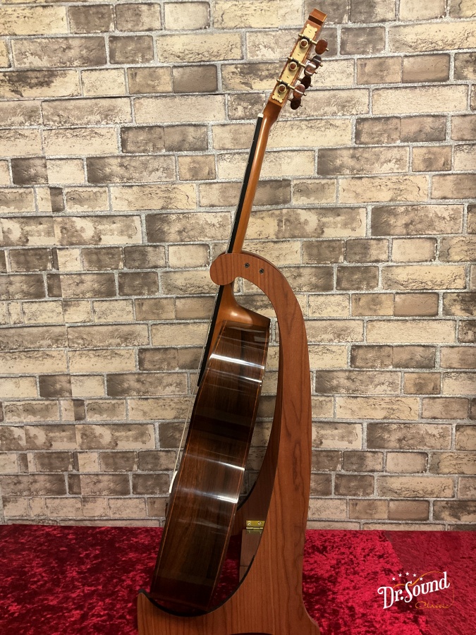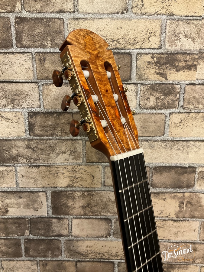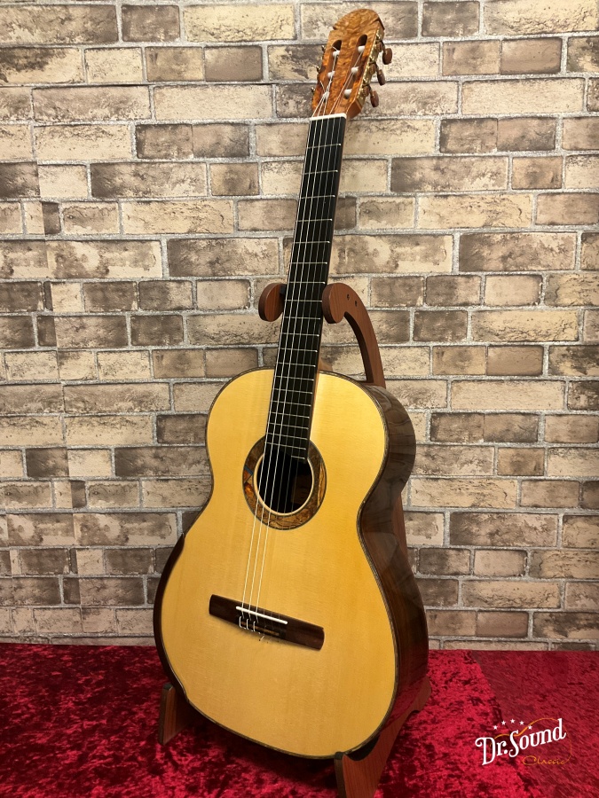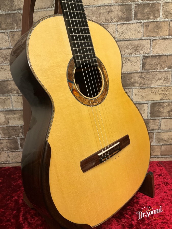 1989年にフランスの最優秀職人賞を受賞し、今や世界中の注目を浴びているギター製作家の一人。伝統的な工法を踏襲しながらも、すみずみまで彼独特の意匠と美学を感じさせる造形と音響。フランスの製作家らしい柔らかく、しかし芯のある響き。自身の楽器を常に改良、刷新し続ける彼にとって、今回入荷したこちらのモデルはまさしくこれまでの彼のどの楽器とも似ていない、伝統とモダニズムがこの上なく見事に融合した一本に仕上がっています。