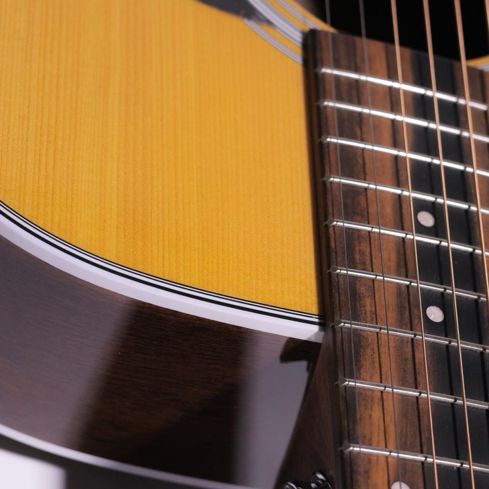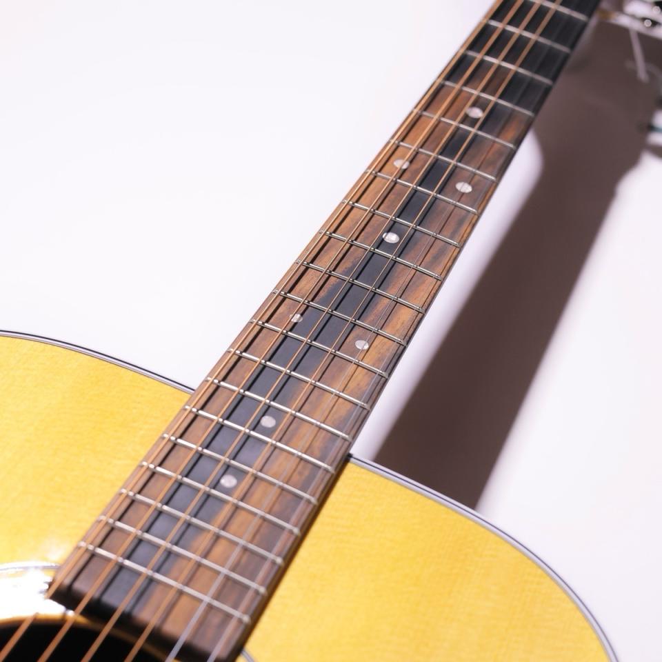 見た目はエイジングトナー仕上げの落ち着いた雰囲気で、使い込むほど生活や演奏の時間に自然に溶け込んでいきます。特別な場面だけでなく、日常的に手に取って弾くことを前提とした、”上質な”体験を提供してくれるモデルです。