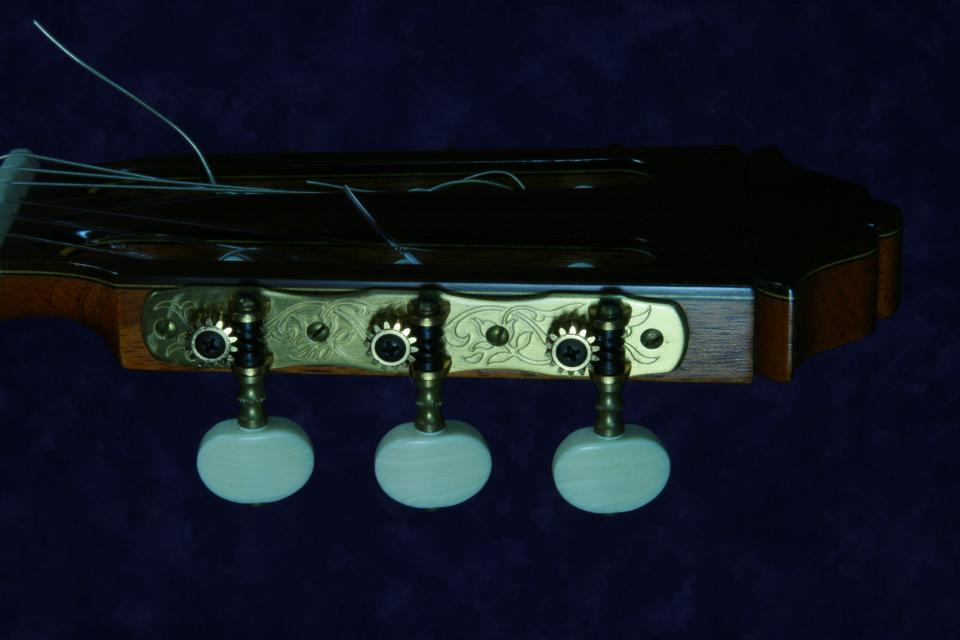 ブリッジはハカランダでヘッドの飾り板はインディアンローズウッドです。