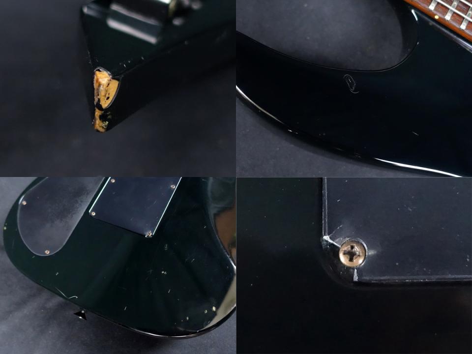 ボディカッタウェイ付近に11mm程の打痕(画像右上参照)、ヘッドエッジ部に宿命的な塗装欠けが見受けられる他、全体的に使用に伴う細かな弾きキズやあて傷、パーツや塗装のくすみが見受けられるものの、35年以上前に製造されたギターとしてはまずまずの外観コンディションになります。
