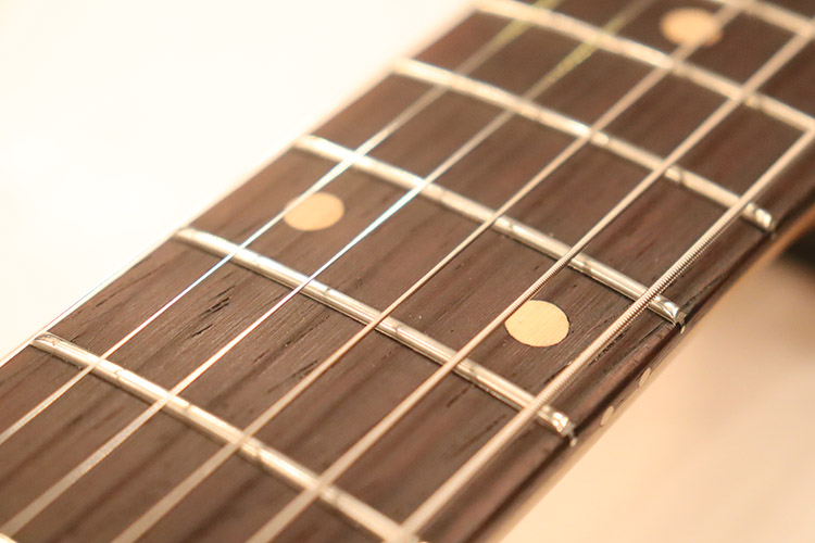 内容は、フレットはリプレイス済みでプレイング・コンディションも良い状態で、その他、ブリッジの高さ調整のスクリューのリプレイス以外のパーツはオリジナルをキープしています