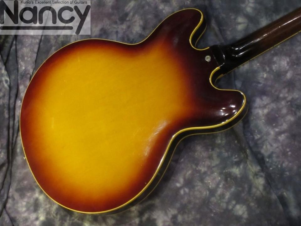 1960年代後半、とても人気があったジャズギターやセミ・アコースティック。その中でも、トラピーズ・テイルピース仕様の335は、よりジャージーでアコースティックな音が出て人気機種でした。その後も、ラリーカールトン、リー・リットナーにより世間一般にその魅力が知られるようになりました。