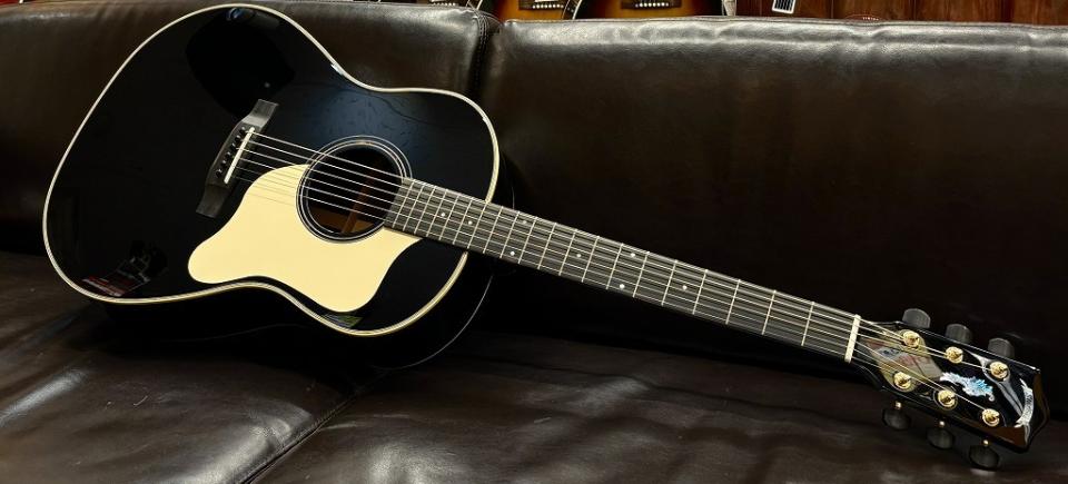 ブラックカラーにべっ甲ピックガード、べっ甲のロゼッタ、復刻を記念したロゴリボンとライオンのヘッドインレイ等、伝統的スタイルを継承しつつも、オリジナリティ溢れるデザインを採用されております。