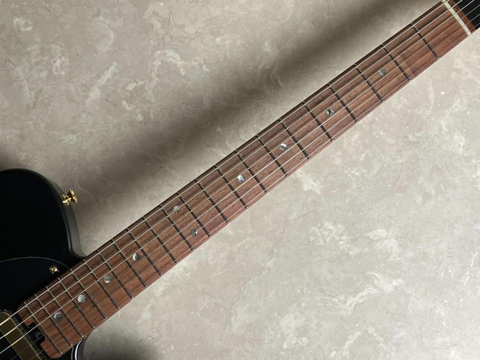 指板には希少なマダガスカルローズウッドを使用しており、ステンレスナロートールフレットと225R-300Rコンパウンドラジアス指板で現代的な演奏もこなせる仕様になっております。