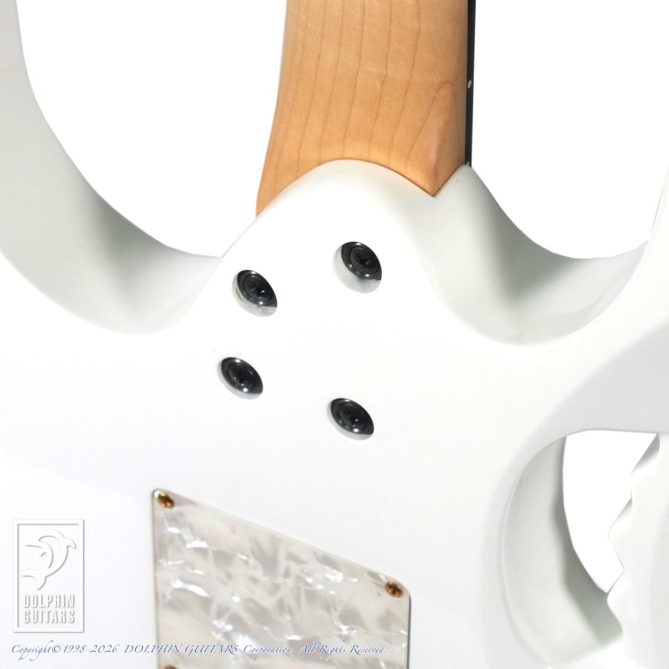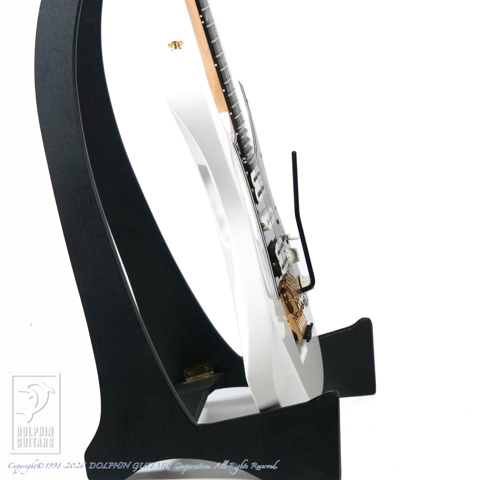 アルダーにホワイトフィニッシュを纏った王道のルックスは、90年代Ibanezを象徴する存在。深く切り込まれたカッタウェイと極薄ネック、ハイポジションまでストレスなくアクセス可能なオールアクセスジョイントなど、これぞテクニカル志向といったディテール。ツリー・オブ・ライフ・インレイやモンキーグリップなど、JEMならではのアイコニックな意匠で、視覚的なインパクトと所有欲を強く満たしてくれます。