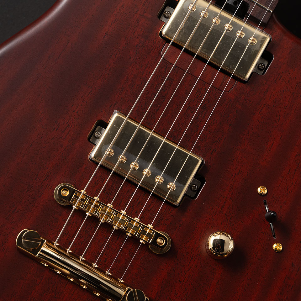 マホガニーらしいミッドの太さを持ちつつも、チェンバーボディにより隠し味として空気感のある胴鳴りを実現。