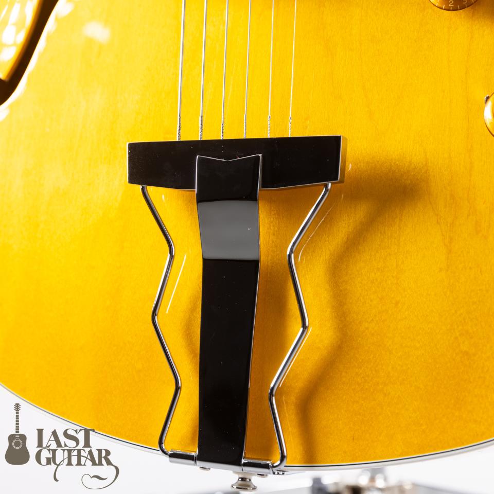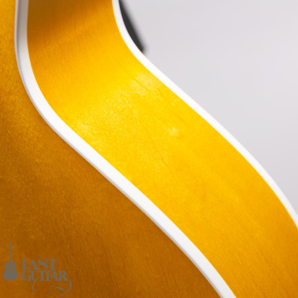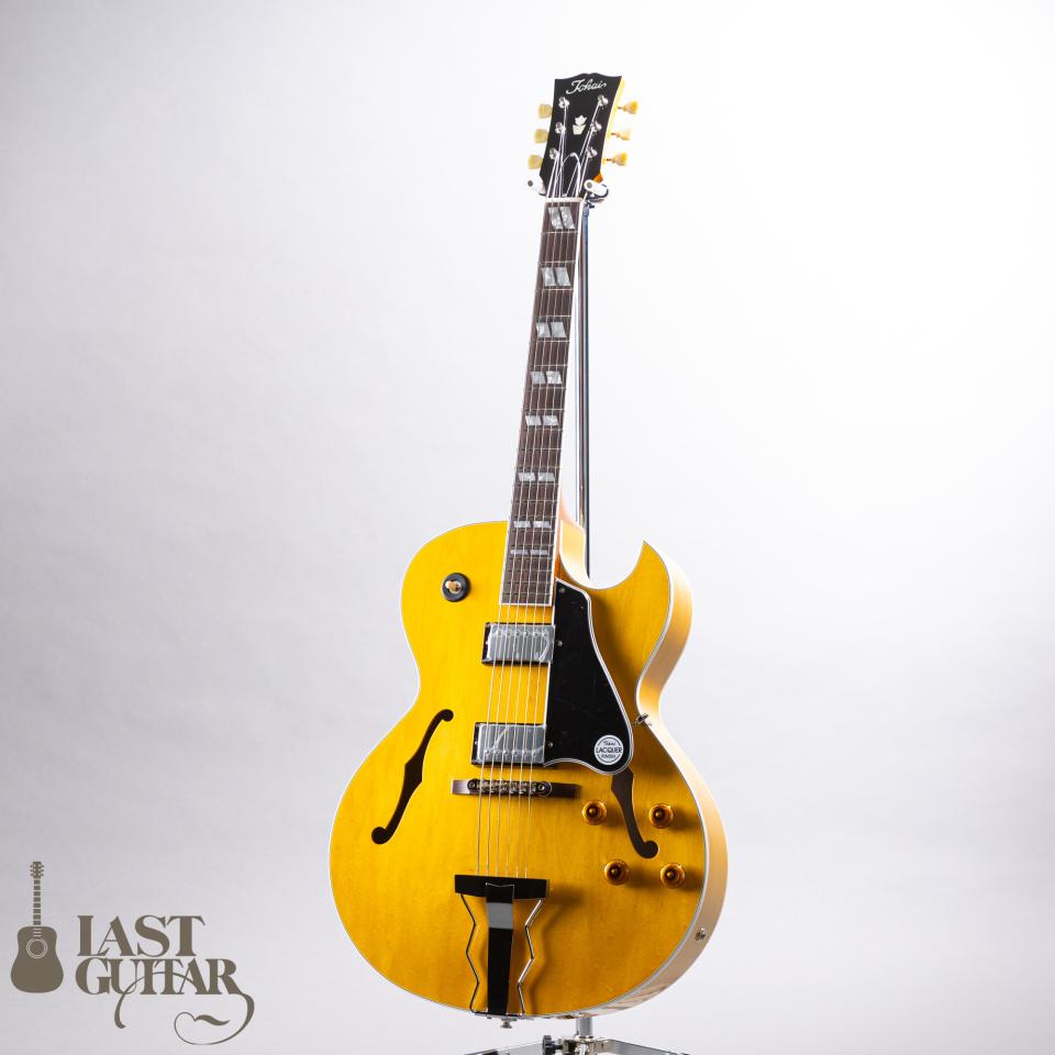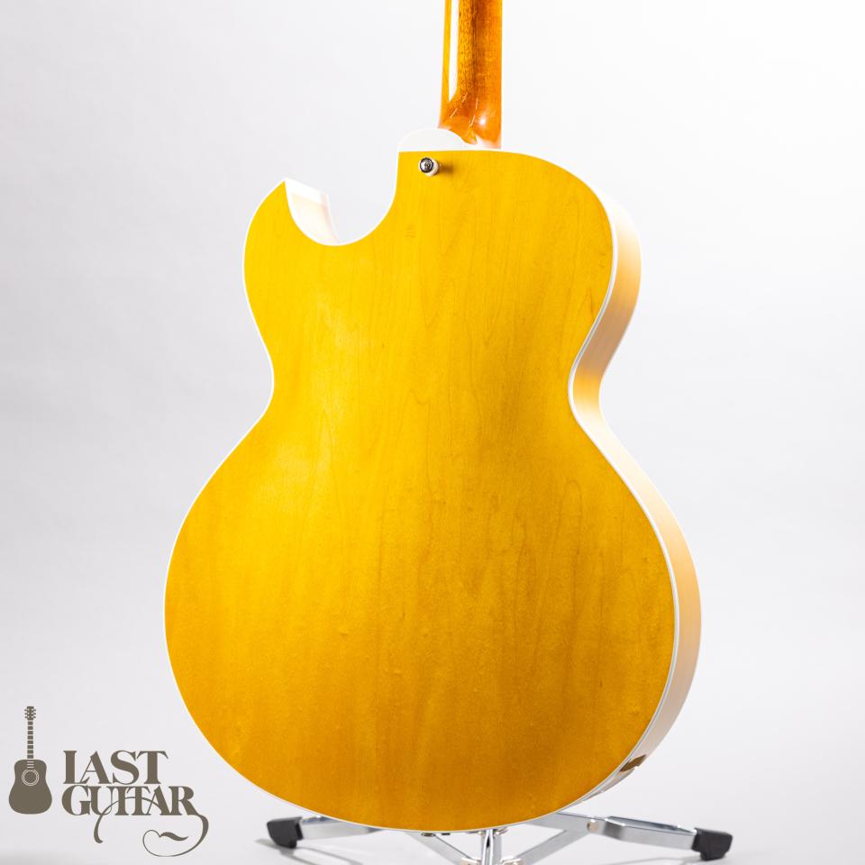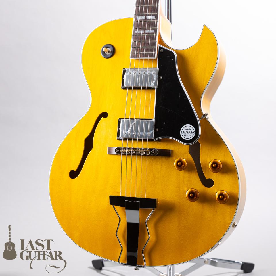 本機は、最新カタログのラインナップからは外れているスポット的生産のES-175スタイルの日本製フルアコースティックギターです。年間生産本数は少なく希少です。ヴィンテージナチュラルカラー、16インチ幅ボディ、ラミネイトメイプルボディ、マホガニーネックのセットネック、ローズウッドフィンガーボード、20フレット仕様、ミディアムスケール。ピックアップは、PAFをイメージしたオリジナルピックアップ「PAF-Vintage MK2」を搭載し、クリアでナチュラルなサウンドをアウトプット。またCTS製ポットやSprague Orange Dropコンデンサの採用等使用パーツまで拘っています。塗装は、トップラッカーフィニッシュ仕上げです。