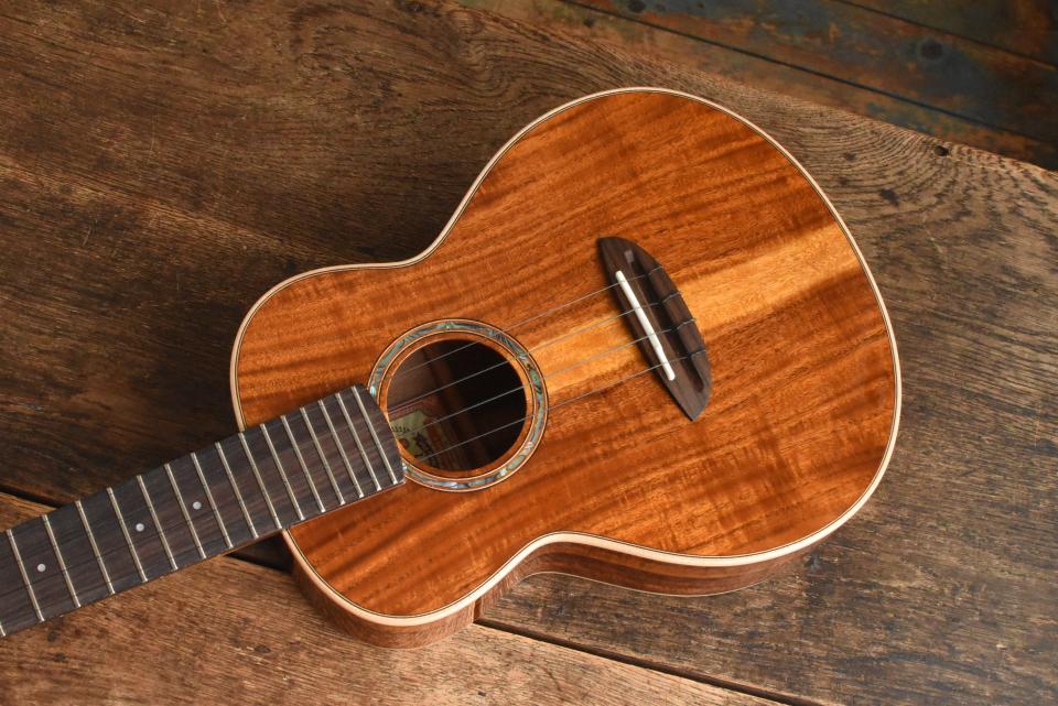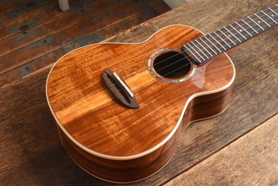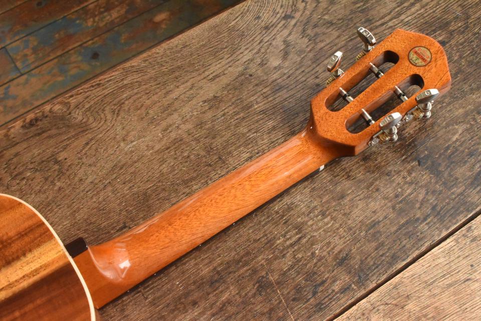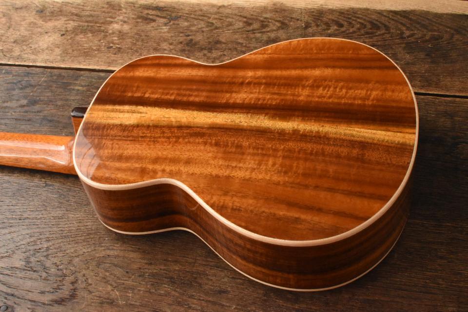 ボディには綺麗な木目と赤褐色の美しい色が特徴の台湾アカシア単板を使用。ローズウッド指板&ブリッジ。マホガニーネック。