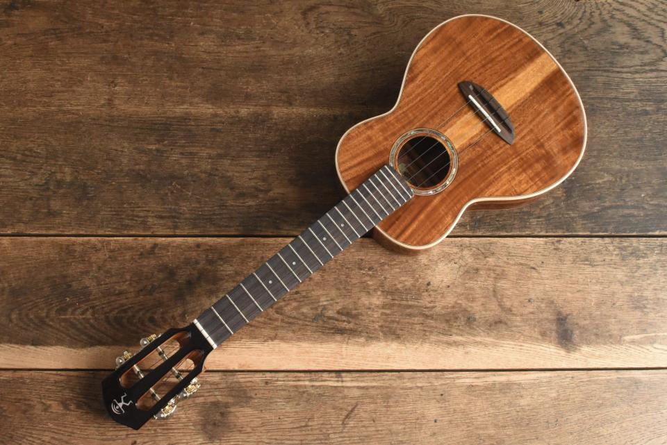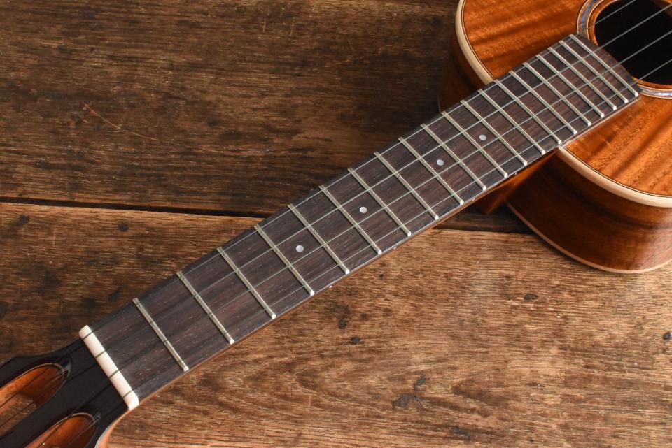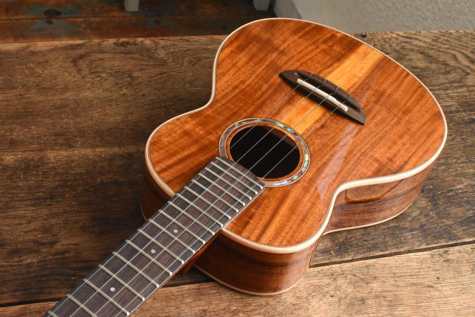 本器は台湾アカシア材を用いて製作された日本限定モデル。スケール380mmのコンサートサイズ。14Fジョイント・20F仕様。