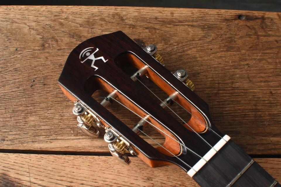 スロテッドヘッドのペグはオリジナルのギア式を採用しチューニングも快適。aNueNueオリジナルのGreen Planetフロロカーボン弦が標準装備されています。