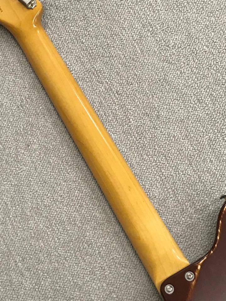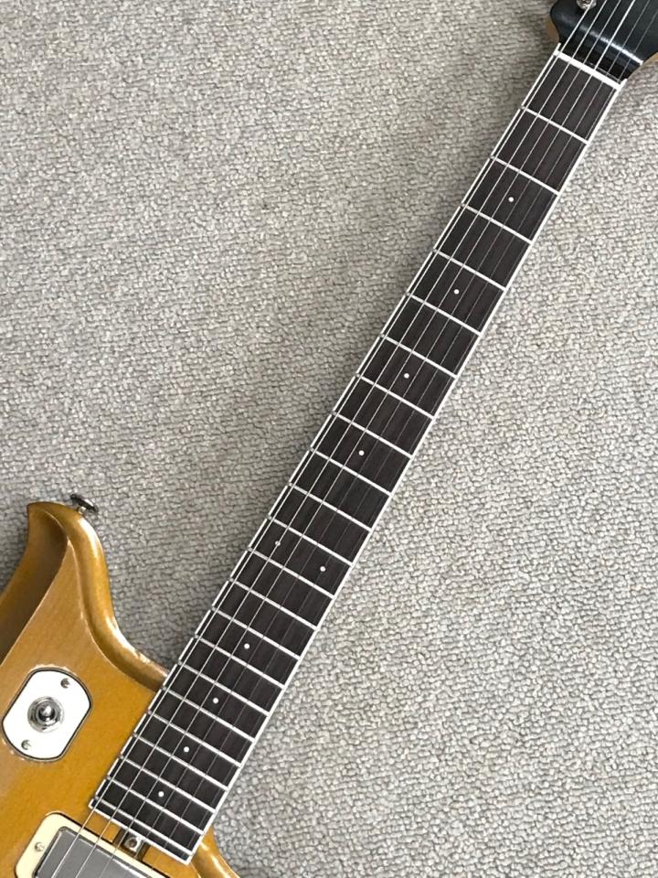 PUはオリジナルのミニハムバッカーを採用しています。 入荷時は扱いやすいPUだなと思いましたが、入荷後のセッティング出している過程で、ミニハムバッカーらしいクリアさと鋭さを持った典型的というかミニハムバッカーかくあるべし、という出来と理解できました。 このピックアップの良さと、メーカー出荷時の雰囲気とのバランスを取りました。 コンチネンタルはいつもより少し厚めのボディで、いつものアカマツより中低域にタイトさがあります。 その生音とPUの鋭さのバランスを絶妙に取りつつ、皆さんが思ったようにブルージィに弾けるようセットアップしました。