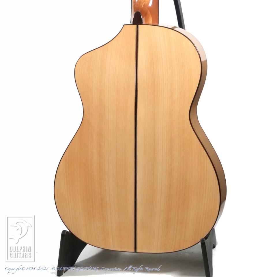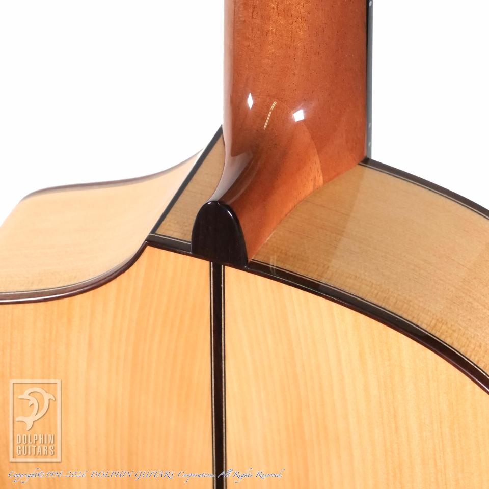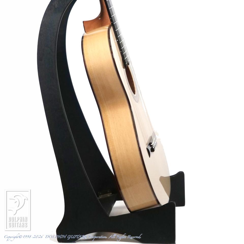 ネックアングルにもこだわり、低い弦高でもテンション感を維持し、クリアでキレの有るサウンドを生み出します。コンパクトボディならではのレスポンスの良さが特徴のモデルですが、総単板のシープレスを使用することにより、より良い反応と音量感も楽しんでいただけると同時に、軽やかな弾き心地、サウンドはポップスやジャズ、ボッサなど、幅広く活躍できると思います。