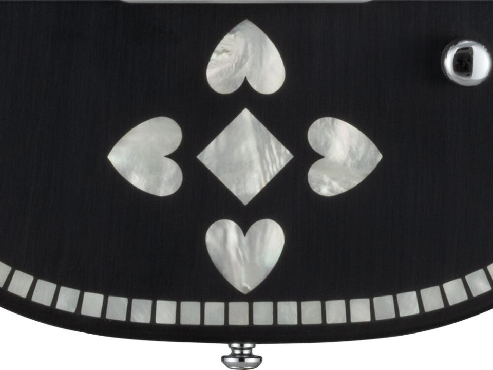 ボディー・トップの外周を沿うように配置されたマザー・オブ・パールのインレイは全部で140枚にも及び、その1枚1枚を手作業にて丁寧に埋め込んでいます。