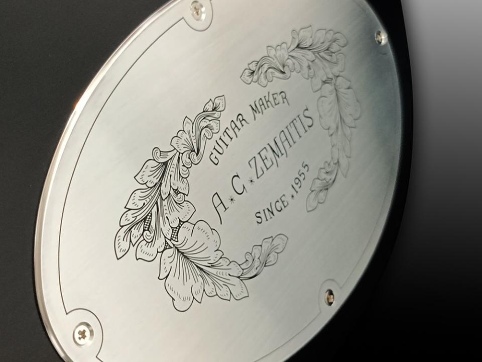ボディー・バックのコントロール・バック・プレートには伝統を示す「A. C. ZEMAITIS SINCE 1955」の文字が刻まれたデザインなどクラシックなルックスが特徴です。