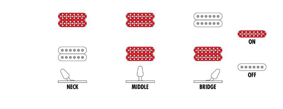 - Controls, Pickup selector 1 Volume, 3-way lever switch